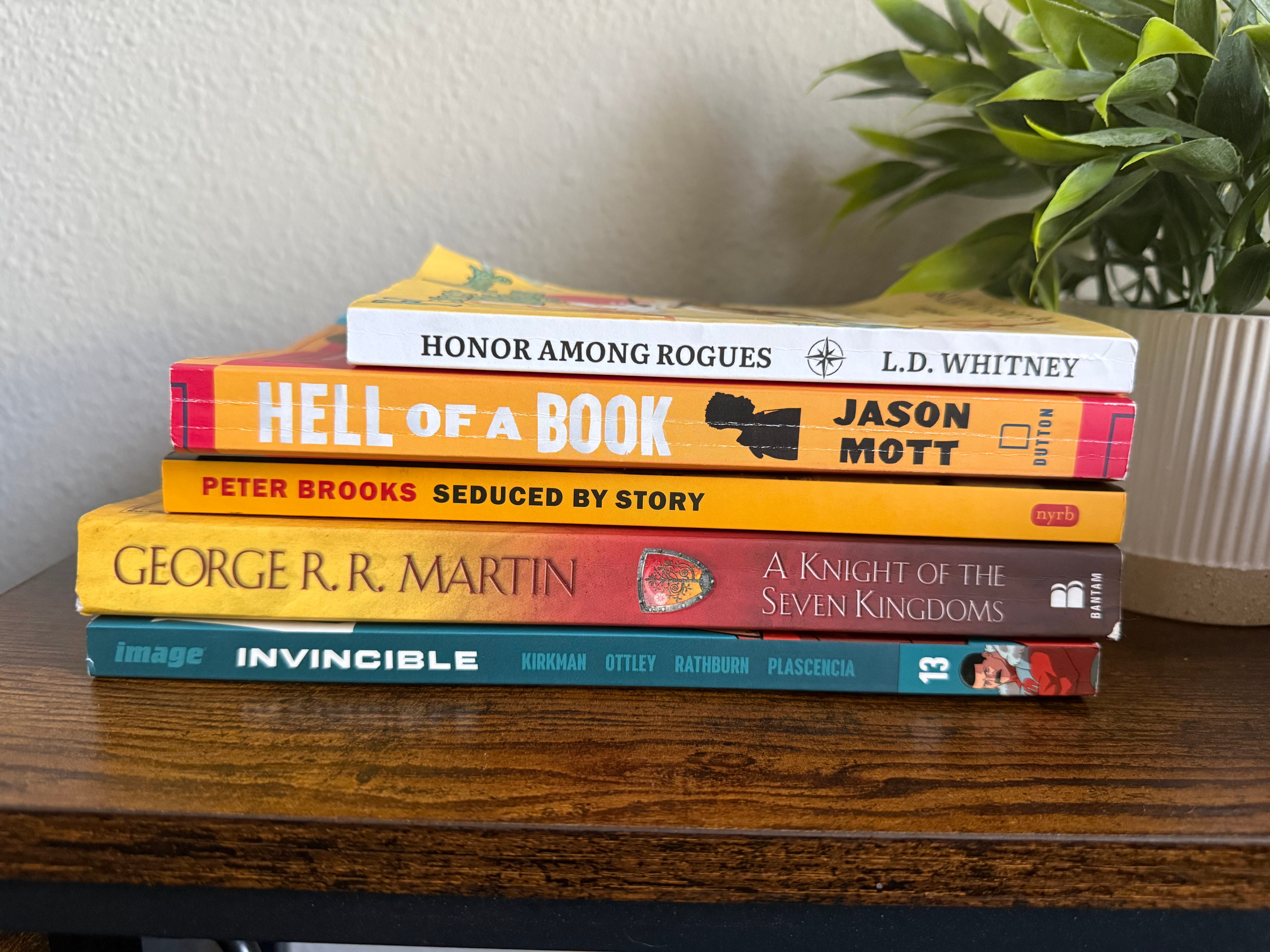 I enjoy how he weaves each essay together. He starts with talking about the machinations of a story - what we gain or lose by following a story, focusing on what the story illicit. He then goes into detail about the ‘teller’ (or narrator) of the story and how they know the story they are telling. With the following essay about the relationship between the teller and the reader/listener. Going into different forms of storytelling, including oral. He goes into more detail about the allure of fictional characters and the effect they have on us and end it talking about the storytelling within the law and courtrooms. The final essay does feel the most tact on, even though it fits thematically, it feels do disconnected to his previous points.