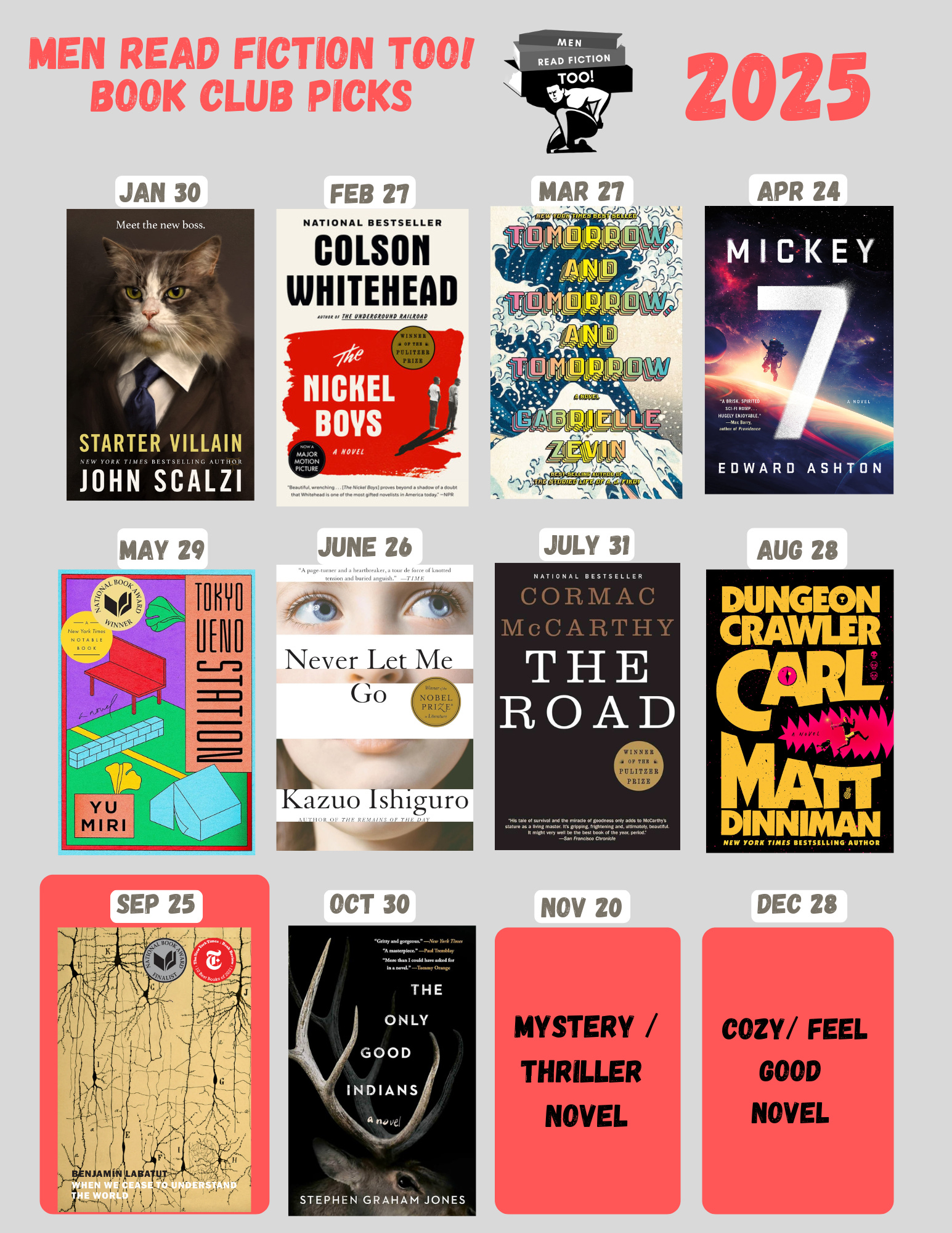 The ultimate goal of this Substack and Book Club is to encourage men, young and old, to read more fiction and discover the transformative experience a great book can offer! We read every kind fictional genre, from authors of all backgrounds. I believe it's important to read a book you wouldn't normally read to broaden our thoughts and challenge our preconceived notions.